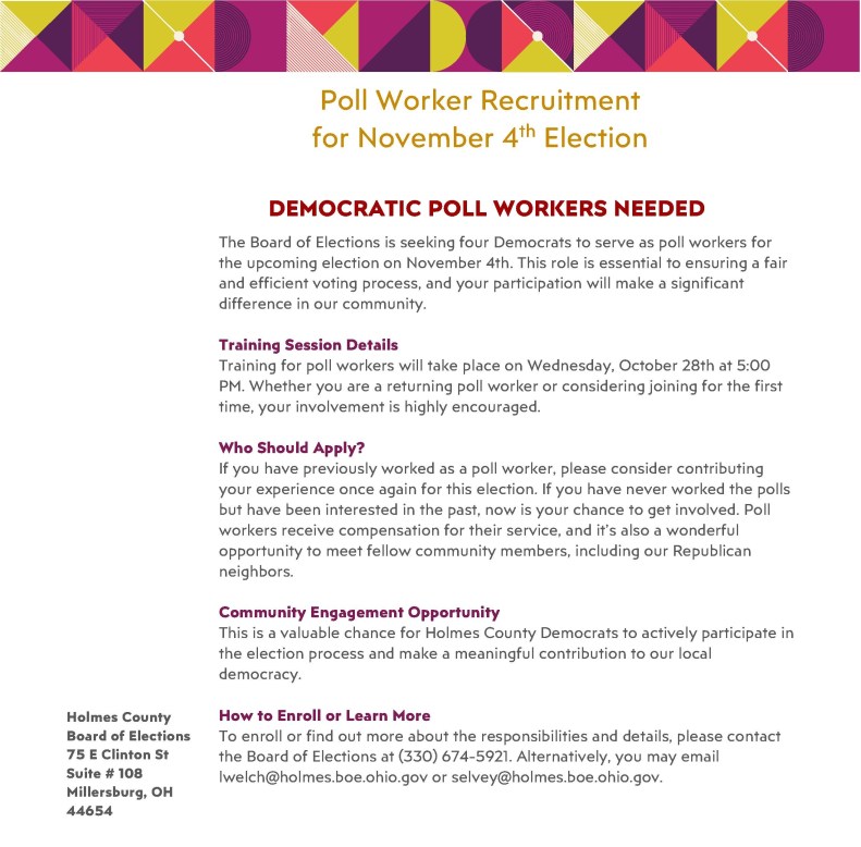See how you can get involved in the Holmes County Democratic Party before election day on our Get Involved page.